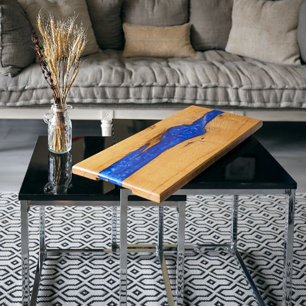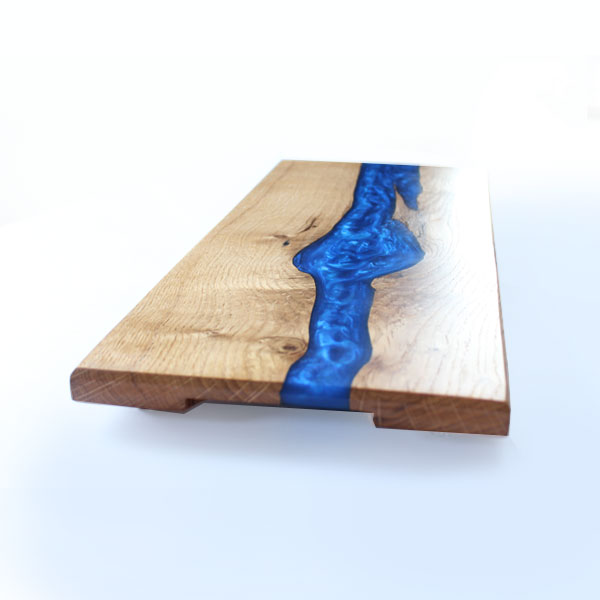 Dessous de plat chêne-époxy-pigment métallique bleu
