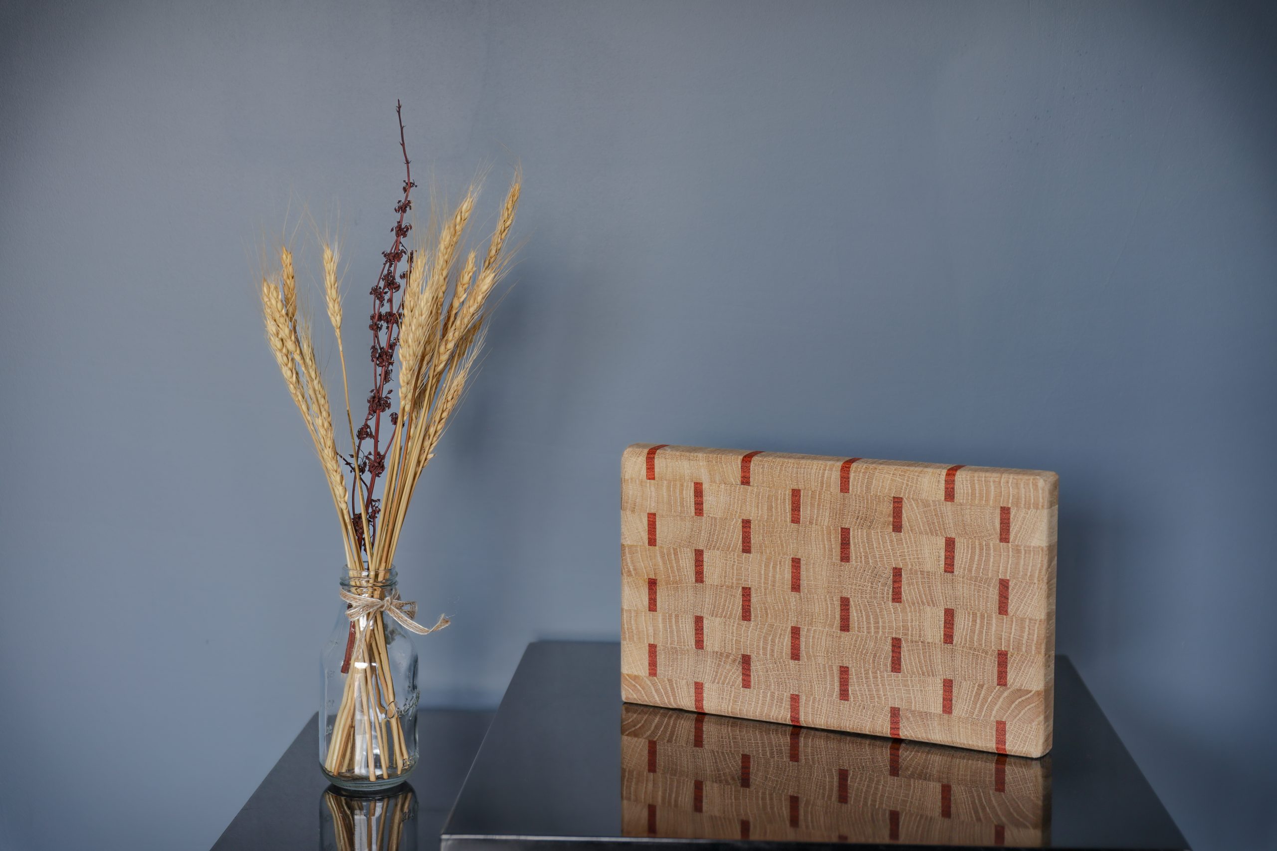 | 29x18x4cm | Planche en bois de bout en Chêne-Padouk-bords inclinés |