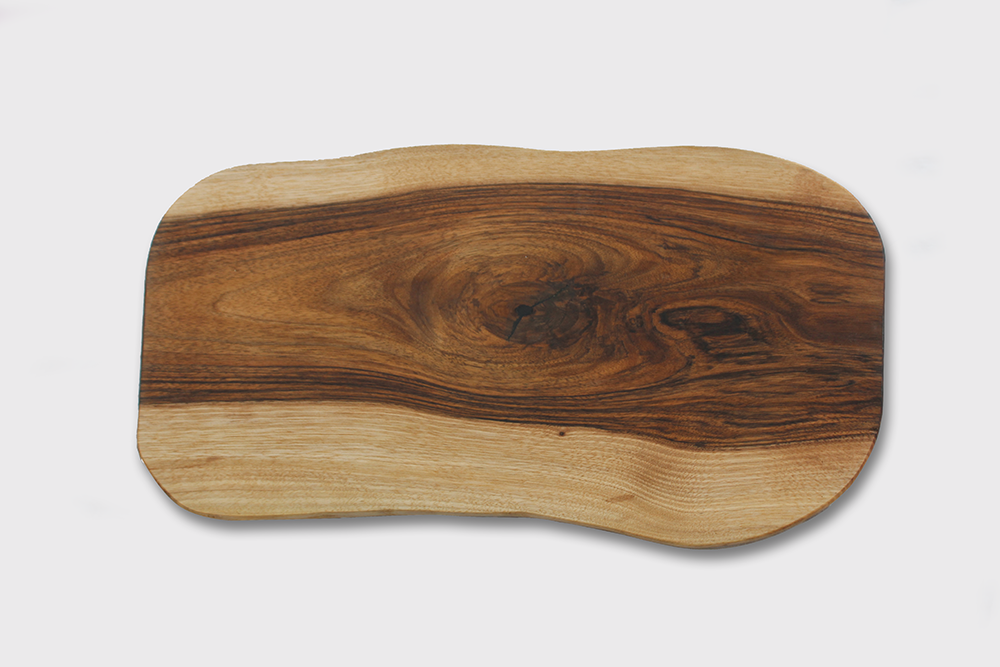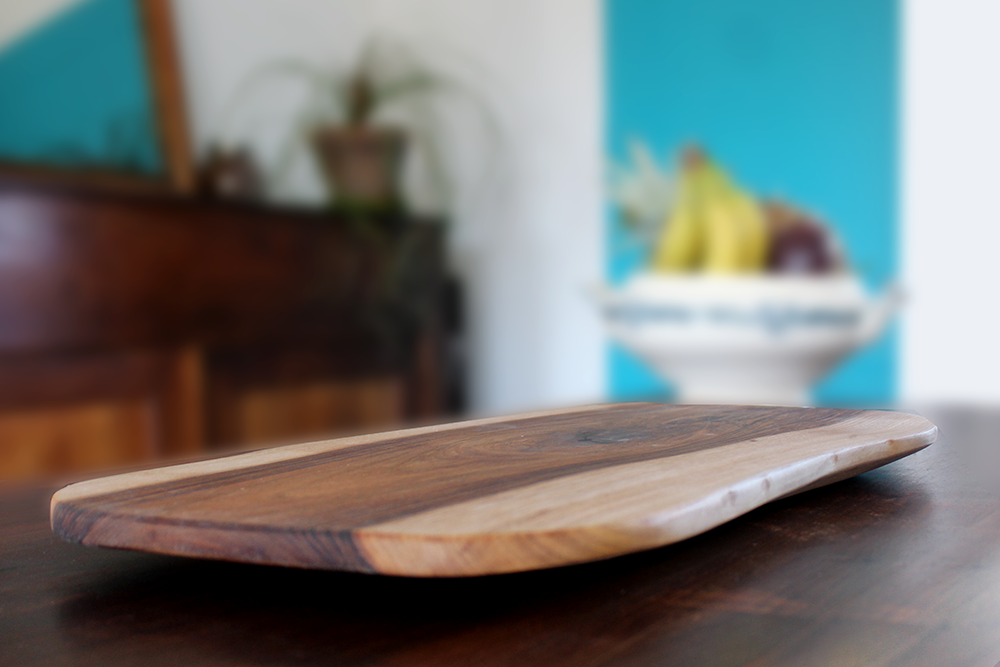 Planche de présentation en Noyer – Bords inclinés – Epoxy alimentaire noire